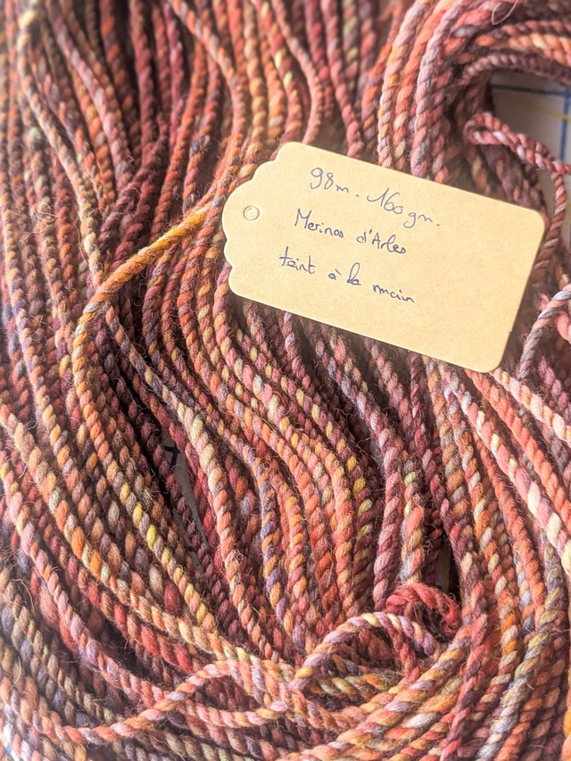 Laine 100% mérinos d'Arles ( France), teinte à la main (octopus yarn and dyes, labellisées intrant GOTS )