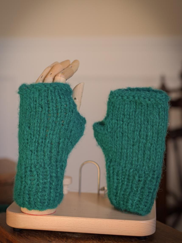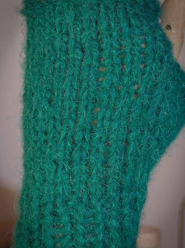 Mitaines alpaga et soie, vert bouteille, tricotées à la main en France