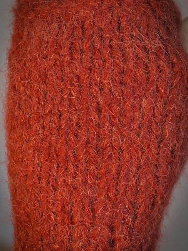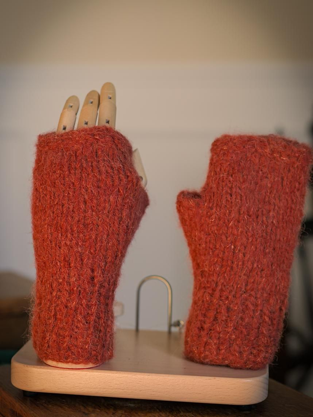 Mitaines en laine d'alpaga et soie rouille tricotée à la main en France