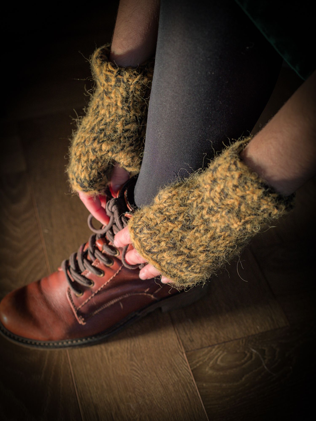 Mitaines en laine jaune et noir