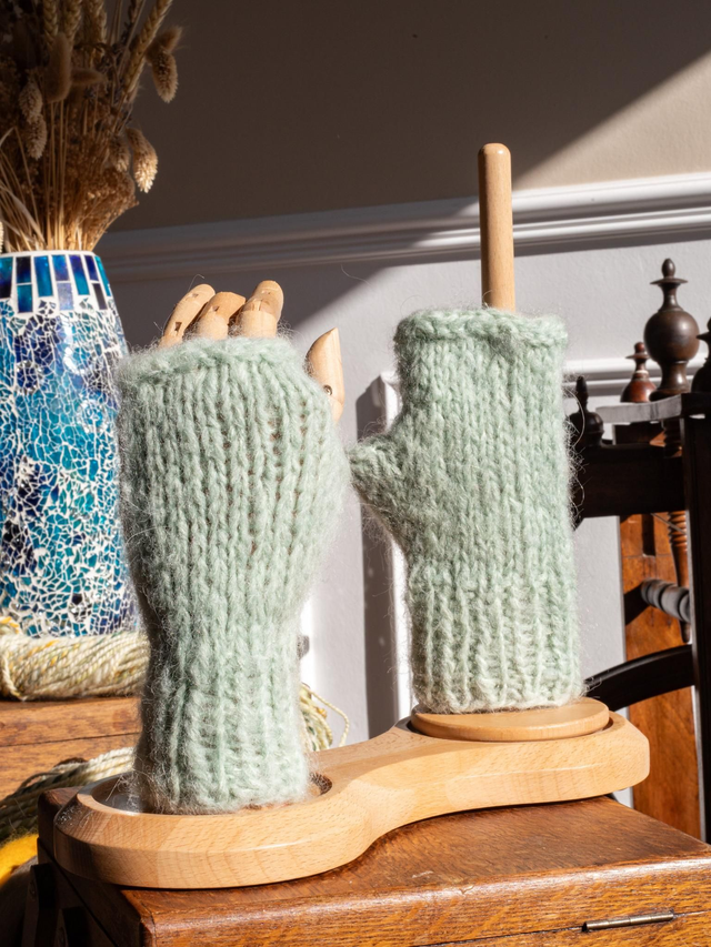 Mitaines vert pastel tricotées à la main en France mérinos alpaga soie
