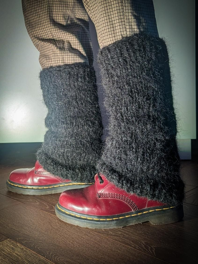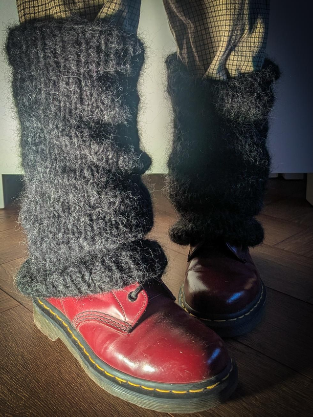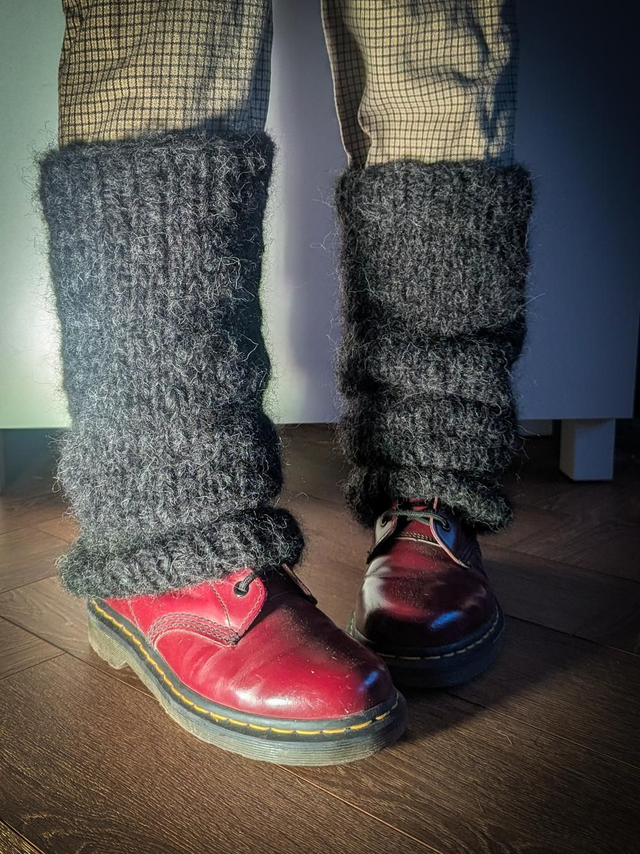 Guêtres tricotées à la main, légèrement évasée sur le bas.